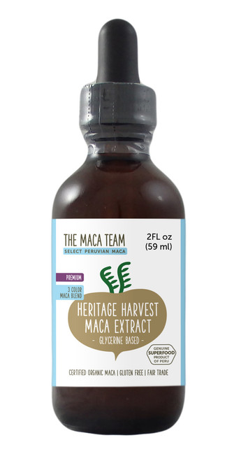 Our Premium Maca extract is made in a proprietary 4 step process that uses vegetable glycerin to concentrate and preserve the nutritive components of our Raw Premium Maca in liquid form.  It has a sweet, pleasant taste, is low on the glycemic index and is suitable for everyone.  All of our extracts are great to carry with you and enjoy throughout the day.   We are the first and only company to offer all types of Maca in glycerin extract form.  Read more about all of our Maca extracts here.